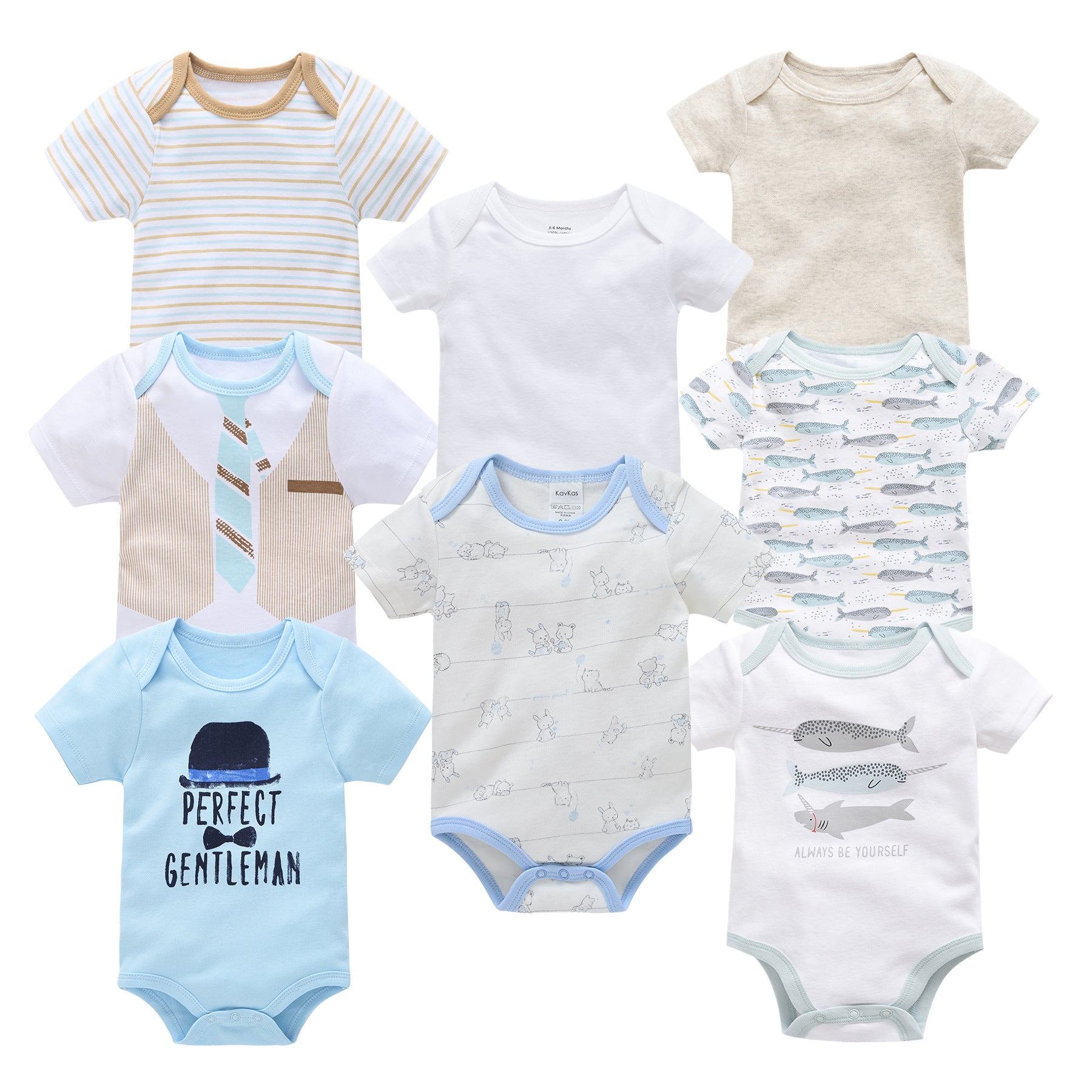 Hans Wilderman 8-Pack Baby Boy Short Sleeve Bodysuits
