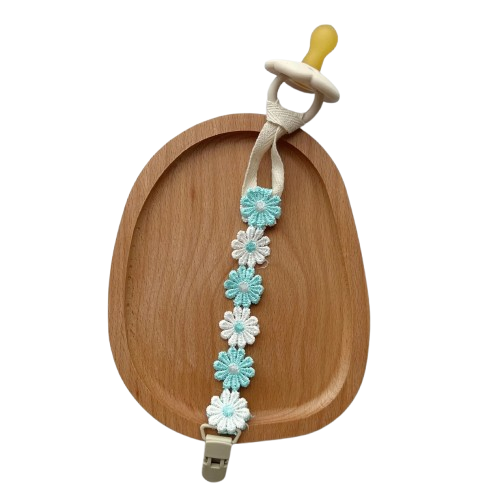 Mit diesem niedlichen Schnullerclip mit Gänseblümchenmotiv haben Sie den Schnuller Ihres Babys immer griffbereit und sauber. Ein praktisches und zugleich süßes Accessoire, das dem Alltagslook Ihres Babys einen Hauch von Stil verleiht.