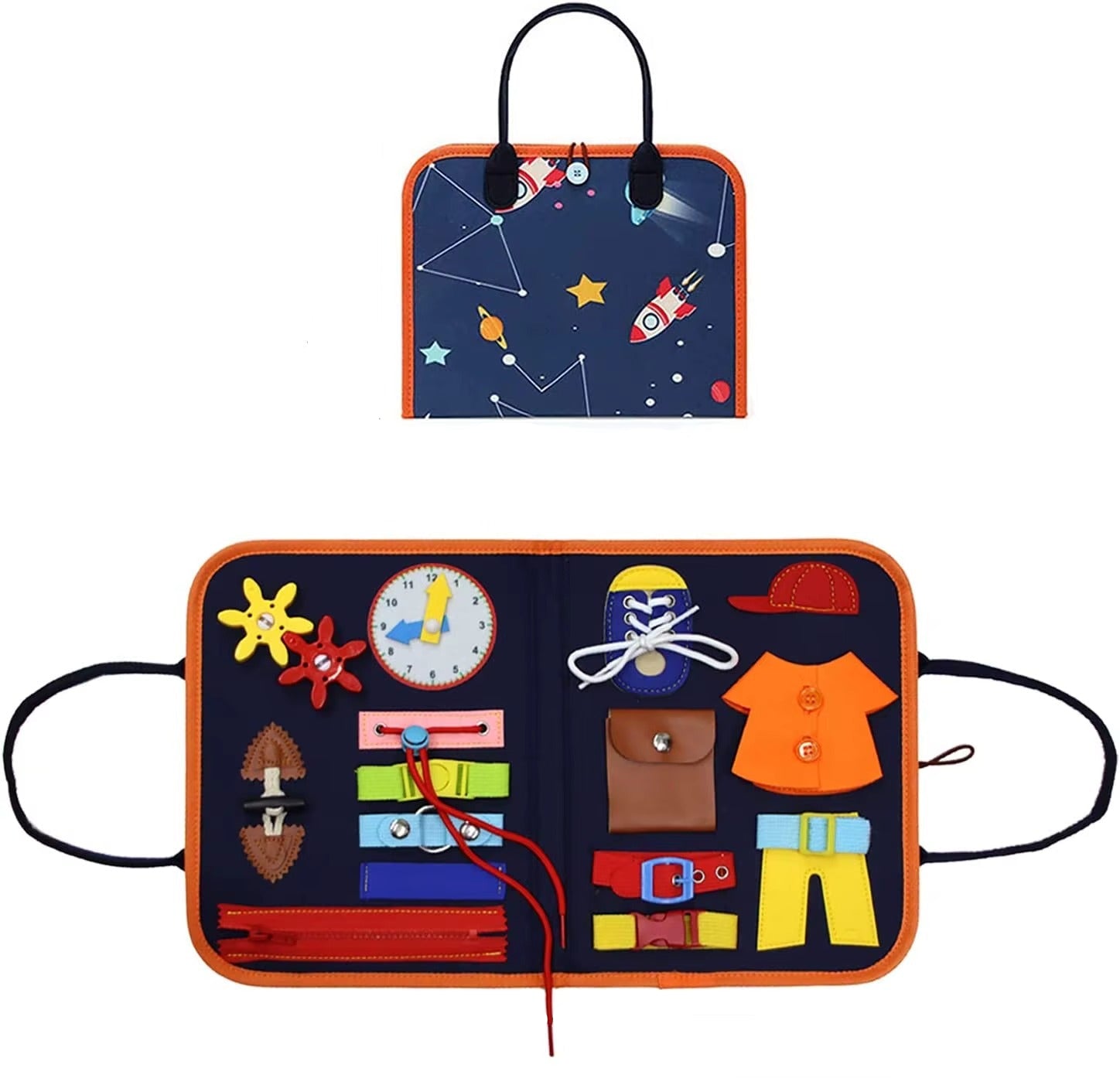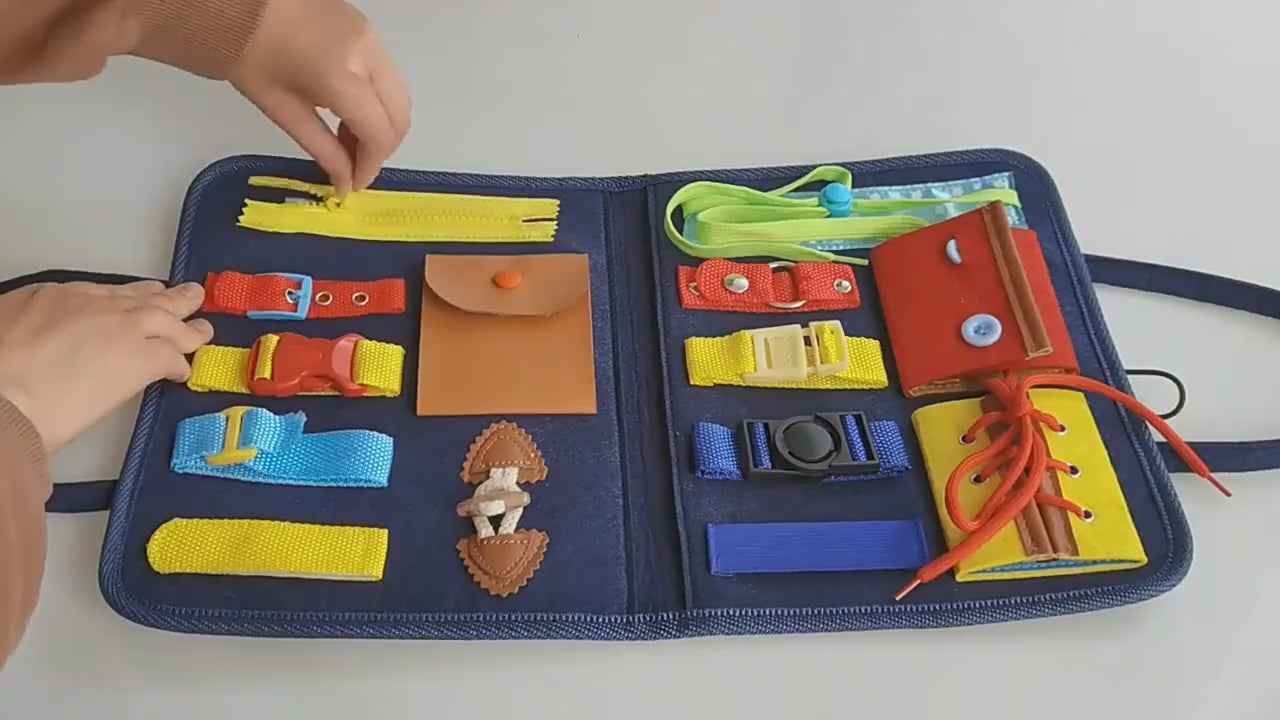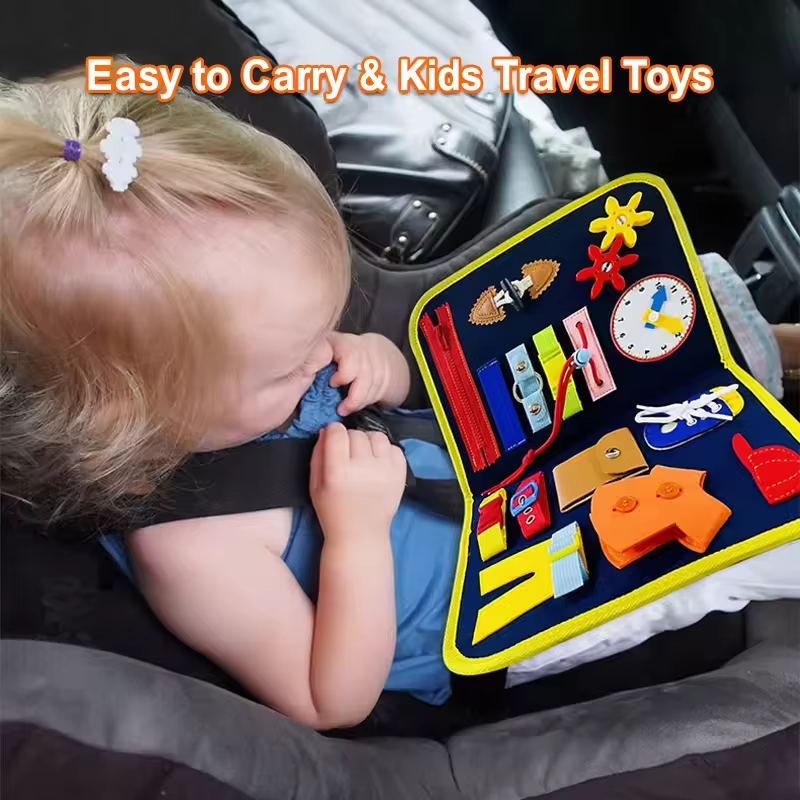Halten Sie Ihre Kleinen mit unserem Montessori Busy Board beschäftigt und neugierig! Mit bunten Reißverschlüssen, Schnallen, Knöpfen, Druckknöpfen und Schnürsenkeln hilft dieses spannende Spielzeug Kleinkindern, spielerisch Feinmotorik, Problemlösungsfähigkeiten und Unabhängigkeit zu entwickeln. Dank seines leichten, tragbaren Designs eignet es sich perfekt für Reisen, Autofahrten oder ruhige Stunden zu Hause.