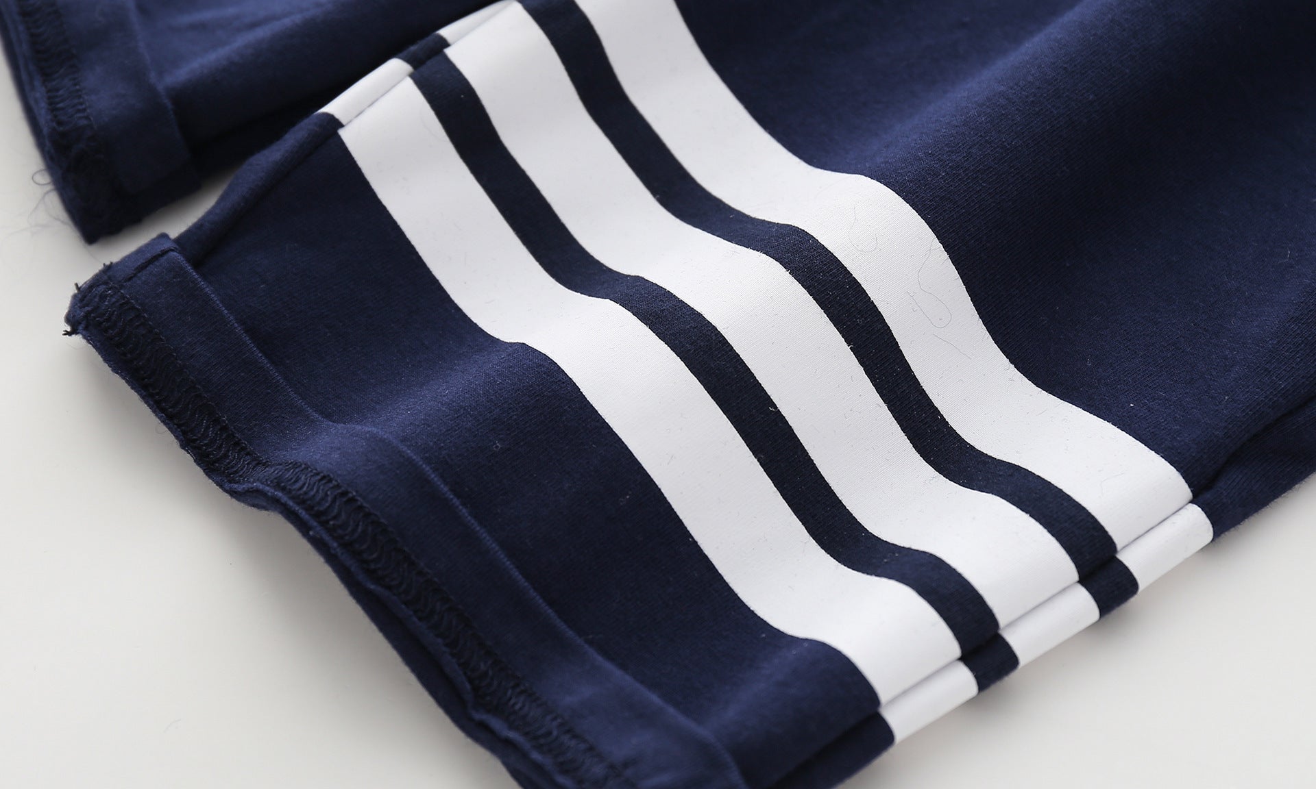- Pantalones cortos azul marino a juego con detalles de rayas
