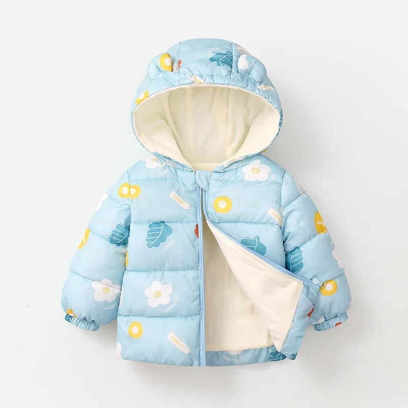 Mantén a tu pequeña abrigada con nuestra chaqueta acolchada de plumón para niña, con un suave forro acolchado y una acogedora capucha para mayor calidez y comodidad durante todo el día. Sus adorables estampados y su práctico cierre de cremallera la hacen práctica y elegante.