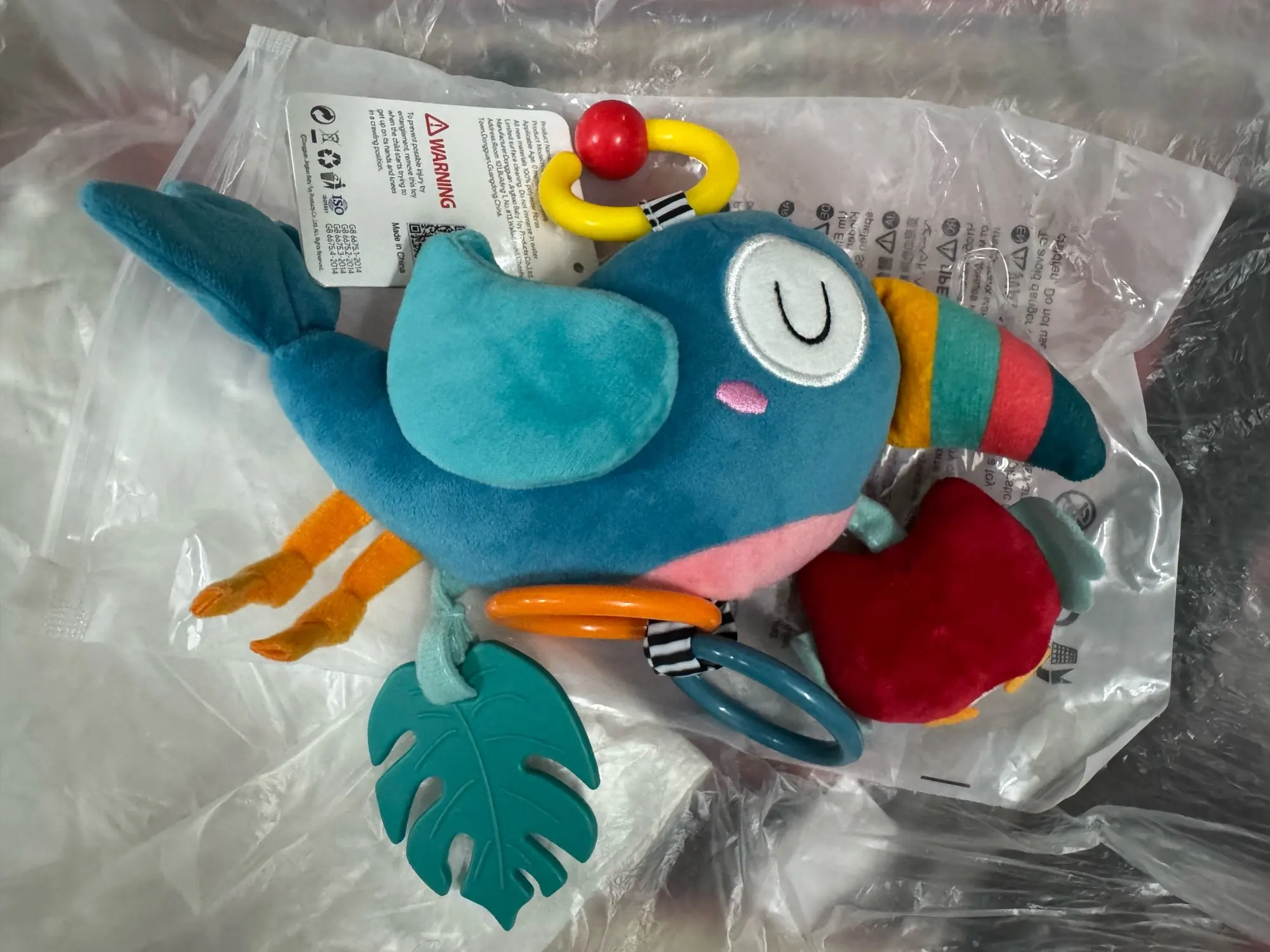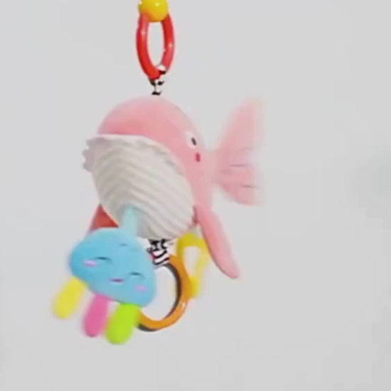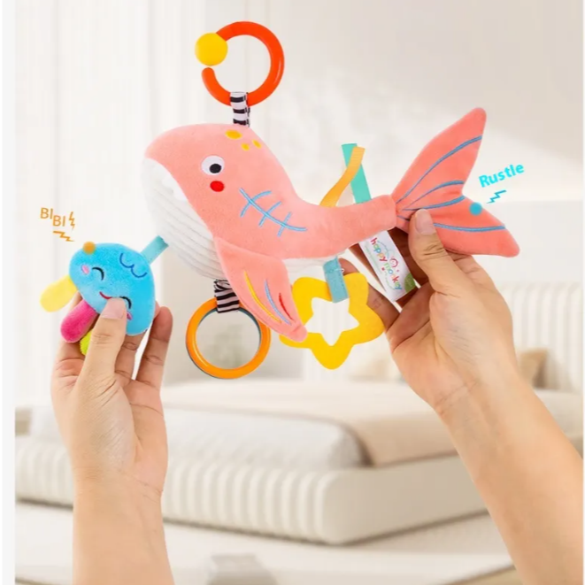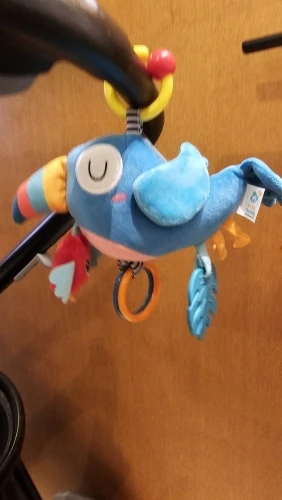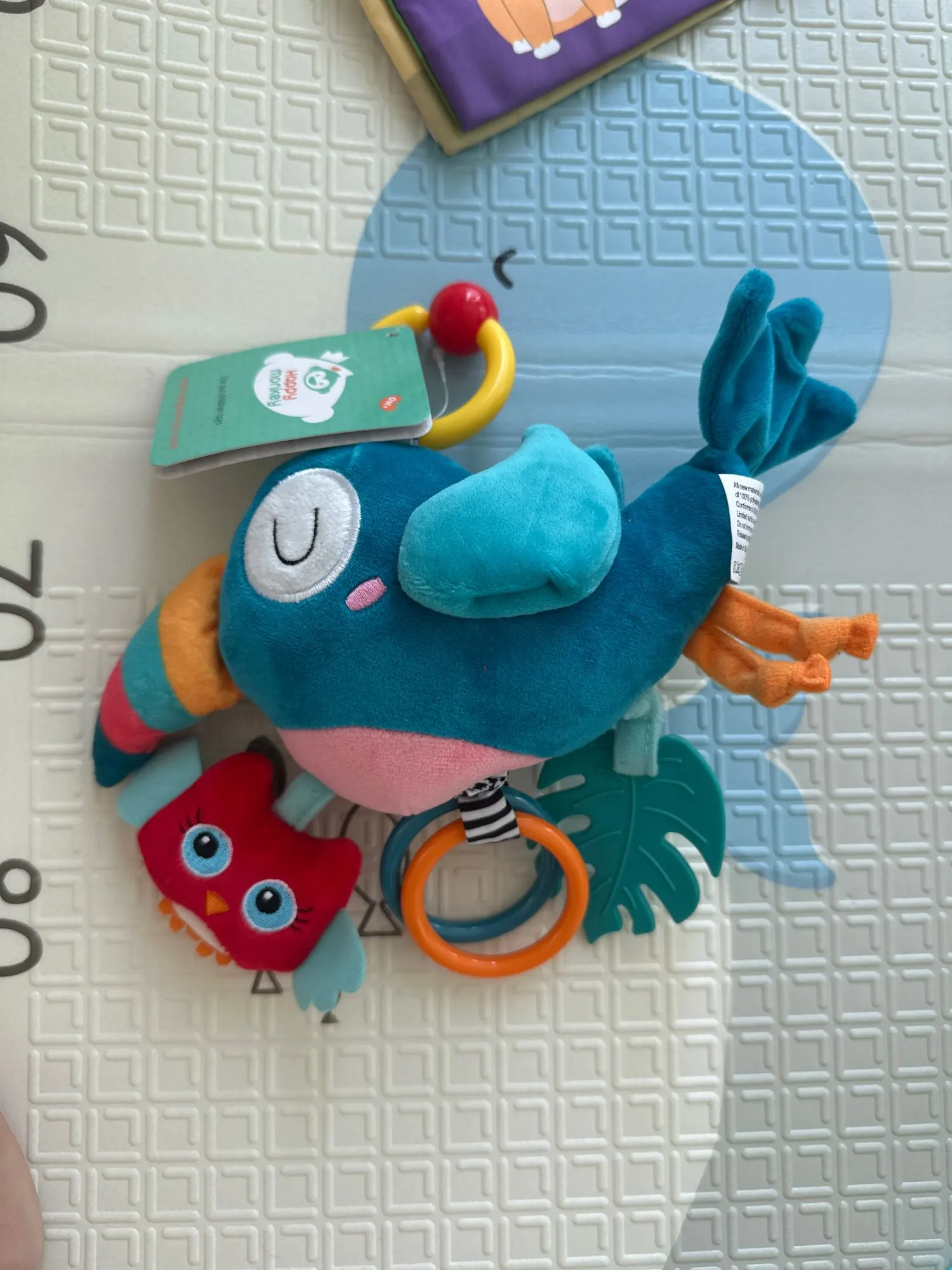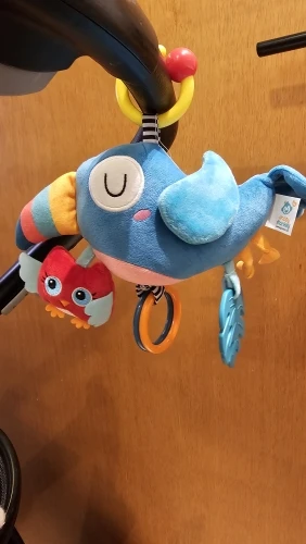 Mantén a tu pequeño entretenido dondequiera que vayas con este adorable peluche musical para cochecito . Este suave y colorido juguete incluye sonajeros, un chirriador, un mordedor y una suave melodía que suena al jalar la anilla. Con su gancho incorporado, se fija fácilmente a cochecitos, cunas, sillas de auto o gimnasios de juego , asegurando que tu bebé siempre tenga un compañero divertido y relajante cerca.