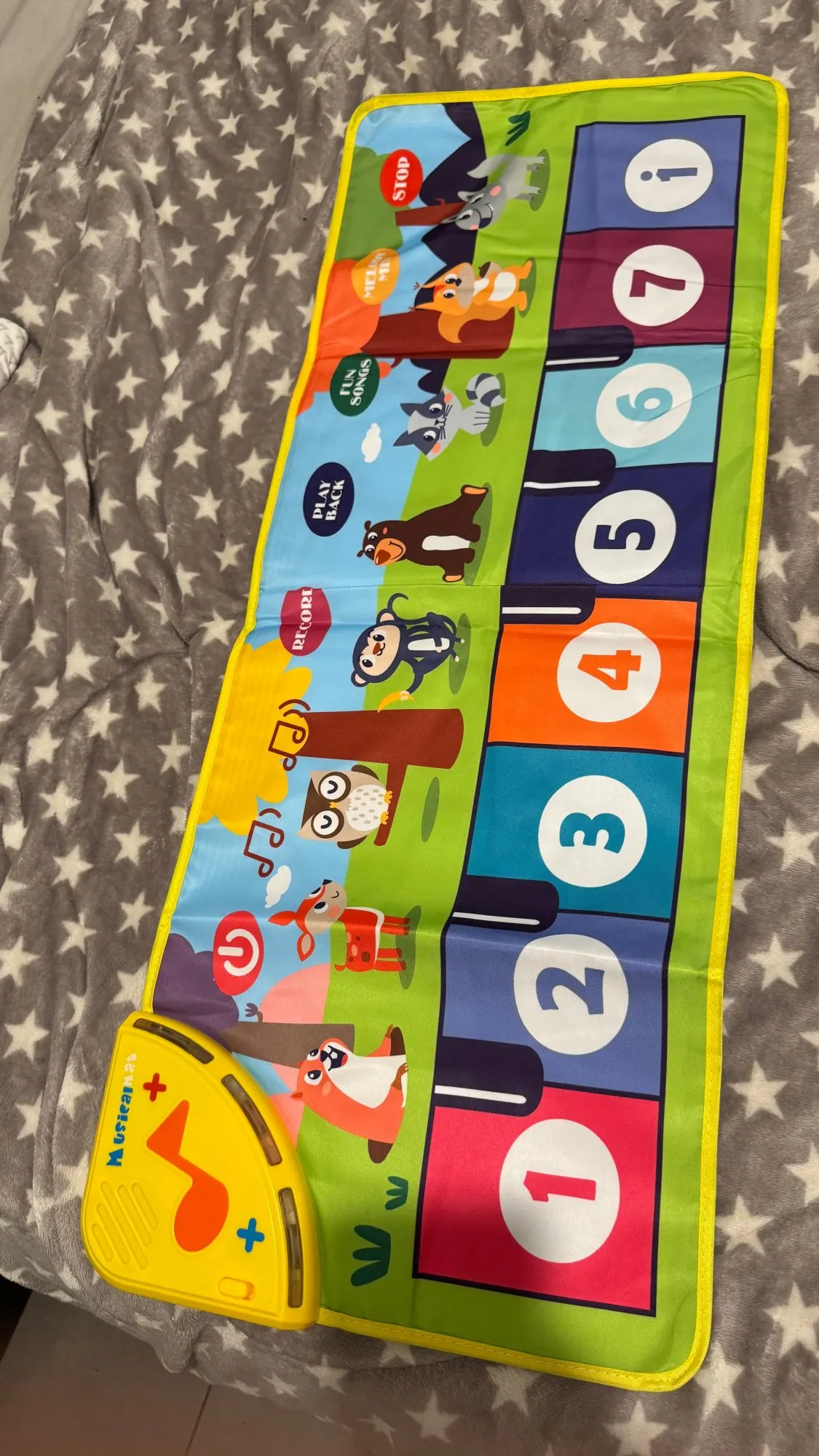 Lara S. Much better than expected, has lots of pre-saved songs and sounds. Just the right size for my young toddler, though expected it to be a bit bigger. The back of the mat is a bit slippery, so better to place on carpet flooring for toddlers who prefer to step / jump on the piano.