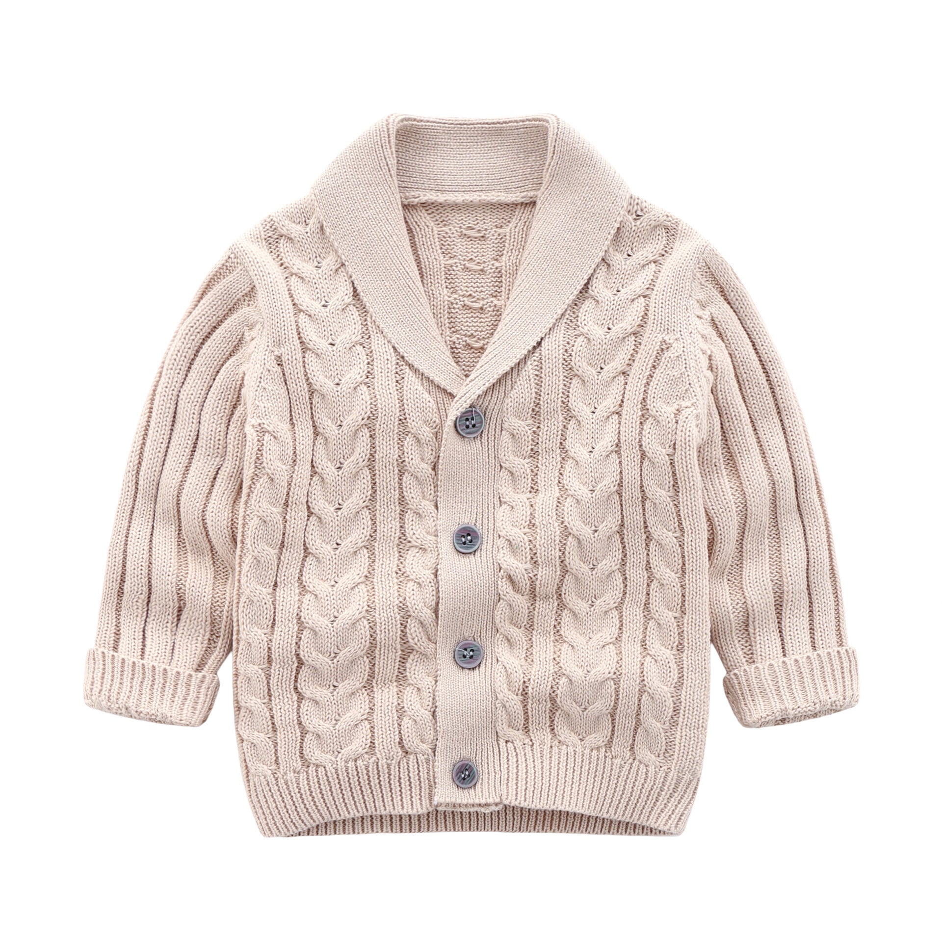 Keep your little one warm and stylish with this Baby Boy Shawl Collar Cardigan, crafted from soft and breathable cotton for all-day comfort. Featuring a classic cable knit design and button-up front, this cozy sweater cardigan is perfect for layering in any season.