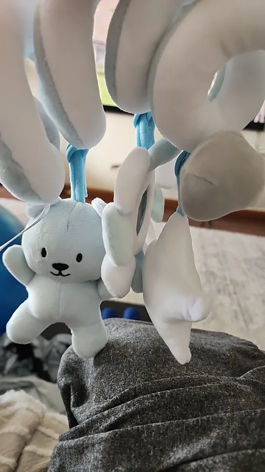 - Cute spiral with a plush animal, flower mirror, and star toy