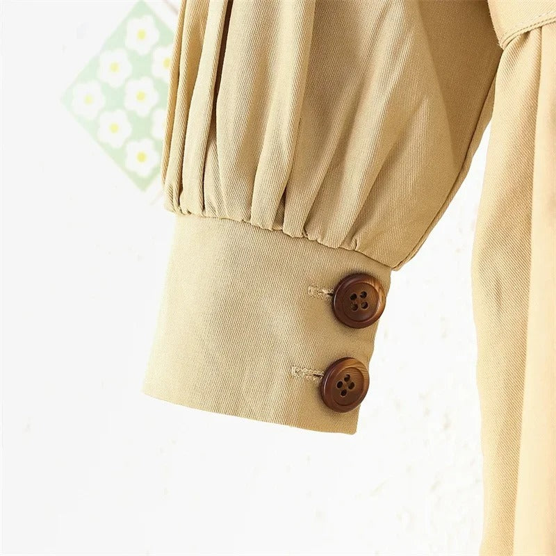 Dress your little one in timeless style with this adorable Baby Girl Belted Trench Coat. Keep her cozy and comfortable with its soft, lightweight fabric and relaxed fit. Elevate her wardrobe with a classic design featuring double-breasted buttons, a waist tie, and puff sleeves for an elegant touch.