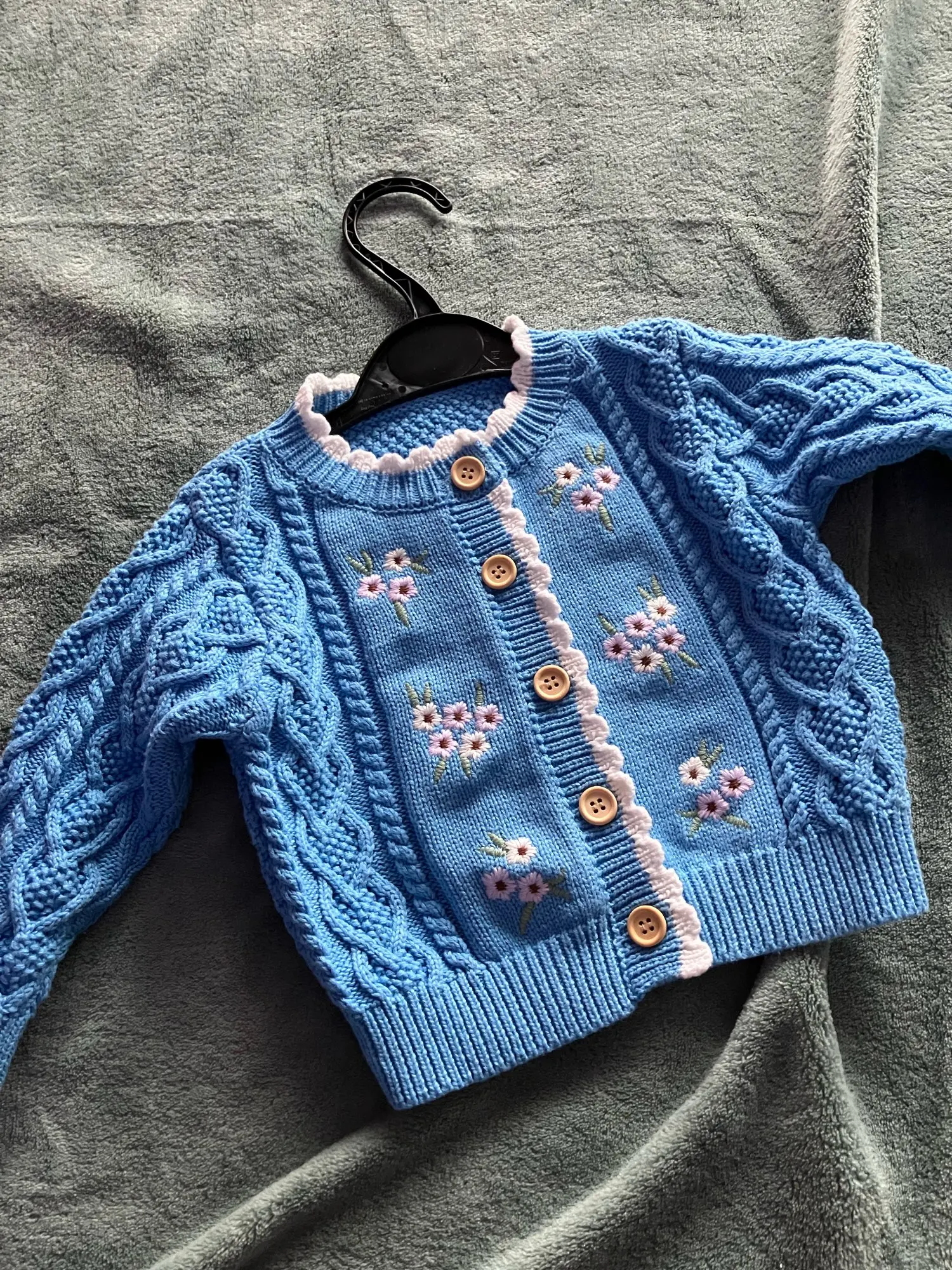 Wrap your little one in cozy elegance with this Baby Girl Floral-Embroidered Cardigan. Made from 100% cotton, it features a delicate cable knit design with charming floral embroidery for a timeless look. Soft, breathable, and gentle on delicate skin, this cardigan is perfect for layering in any season.