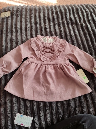 Dress your little one in this sweet Baby Girl Ruffled Corduroy Dress, made from soft cotton and featuring playful ruffle details for a unique, stylish look. Highlighted with charming ribbon details, this dress combines comfort and style for any occasion.